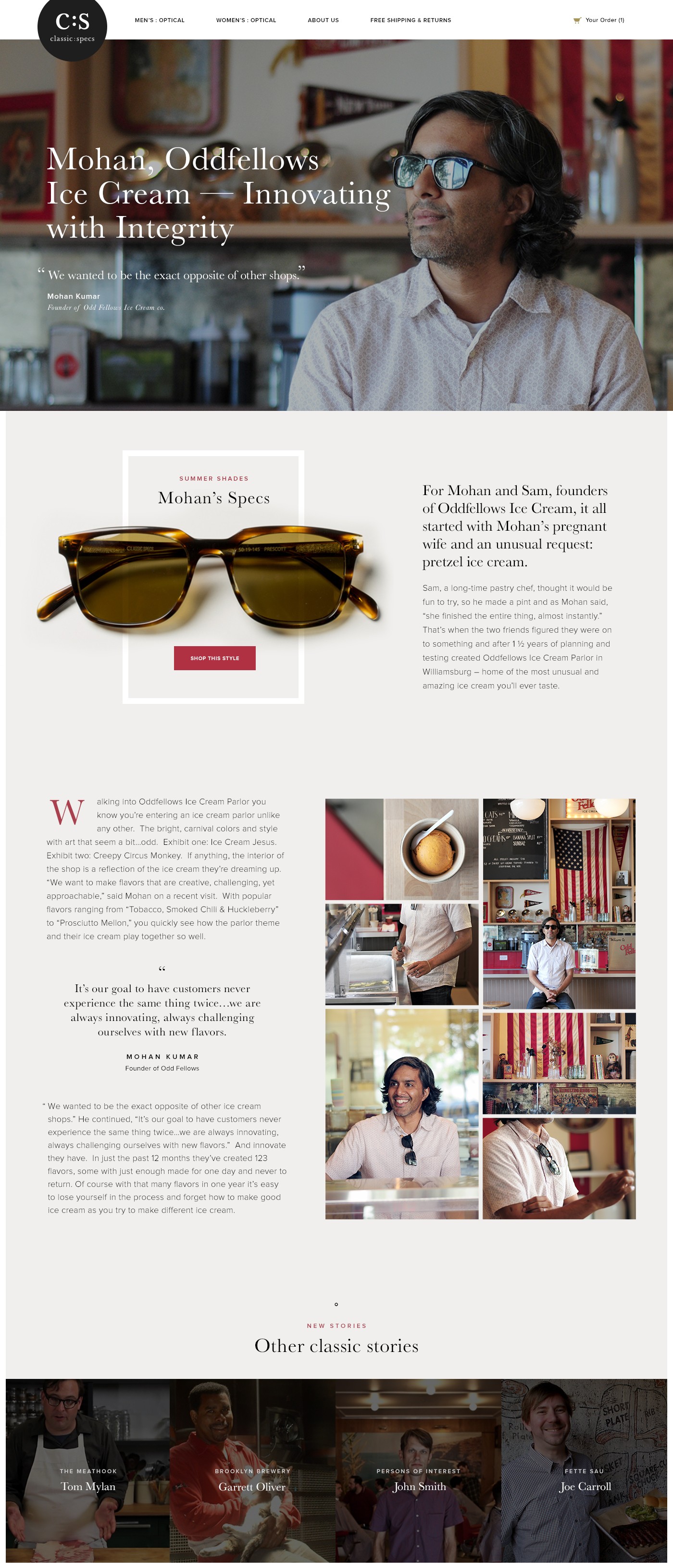 Classic Specs was the consumer brand ontop of a company that was looking to build a white label eyeglasses and suglasses distribution from design, production, to ecommerce, and potentially fullfillment. They used Classic:Specs as the test case for how the system could work. Essentially using it as the proof of concept and test ground for the larger vision of the company. After running the process for awhile they were able to get big collaberations with Ciolette, Sachs Fith Avenue, Net.- A -Porter, and many more.