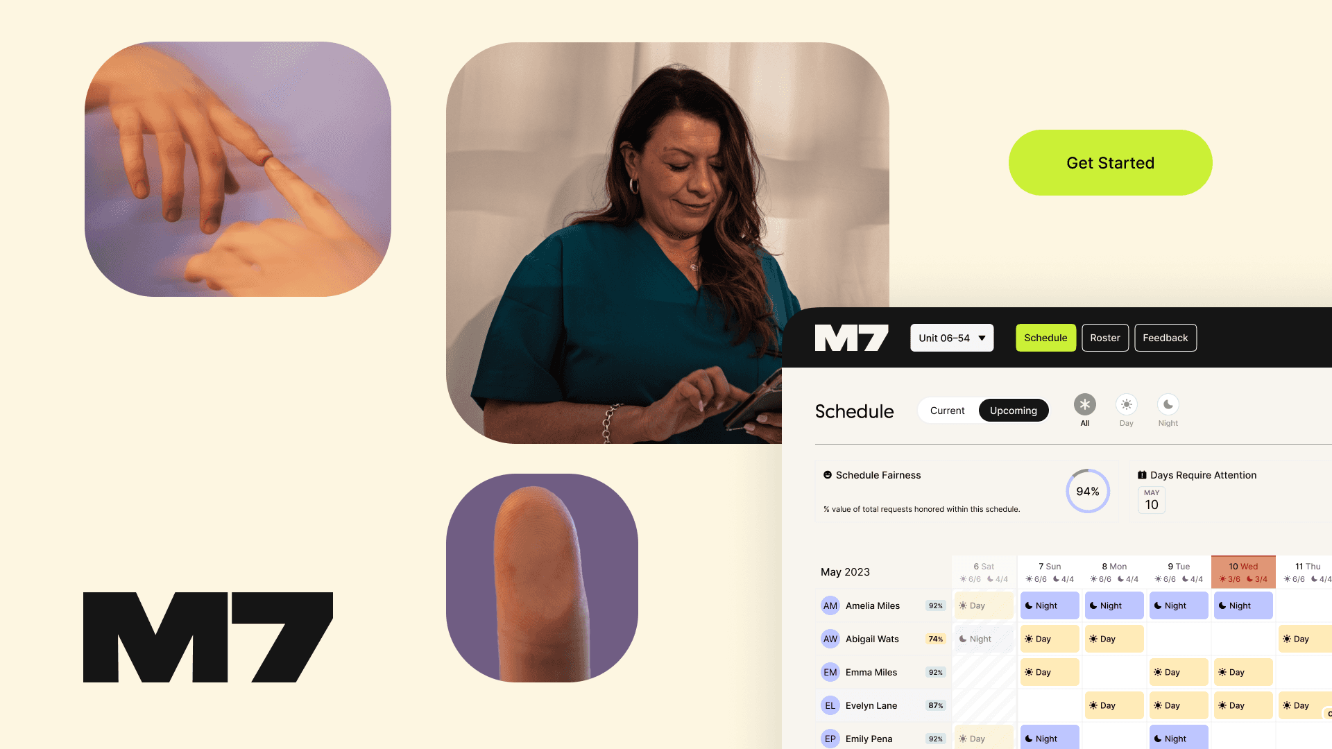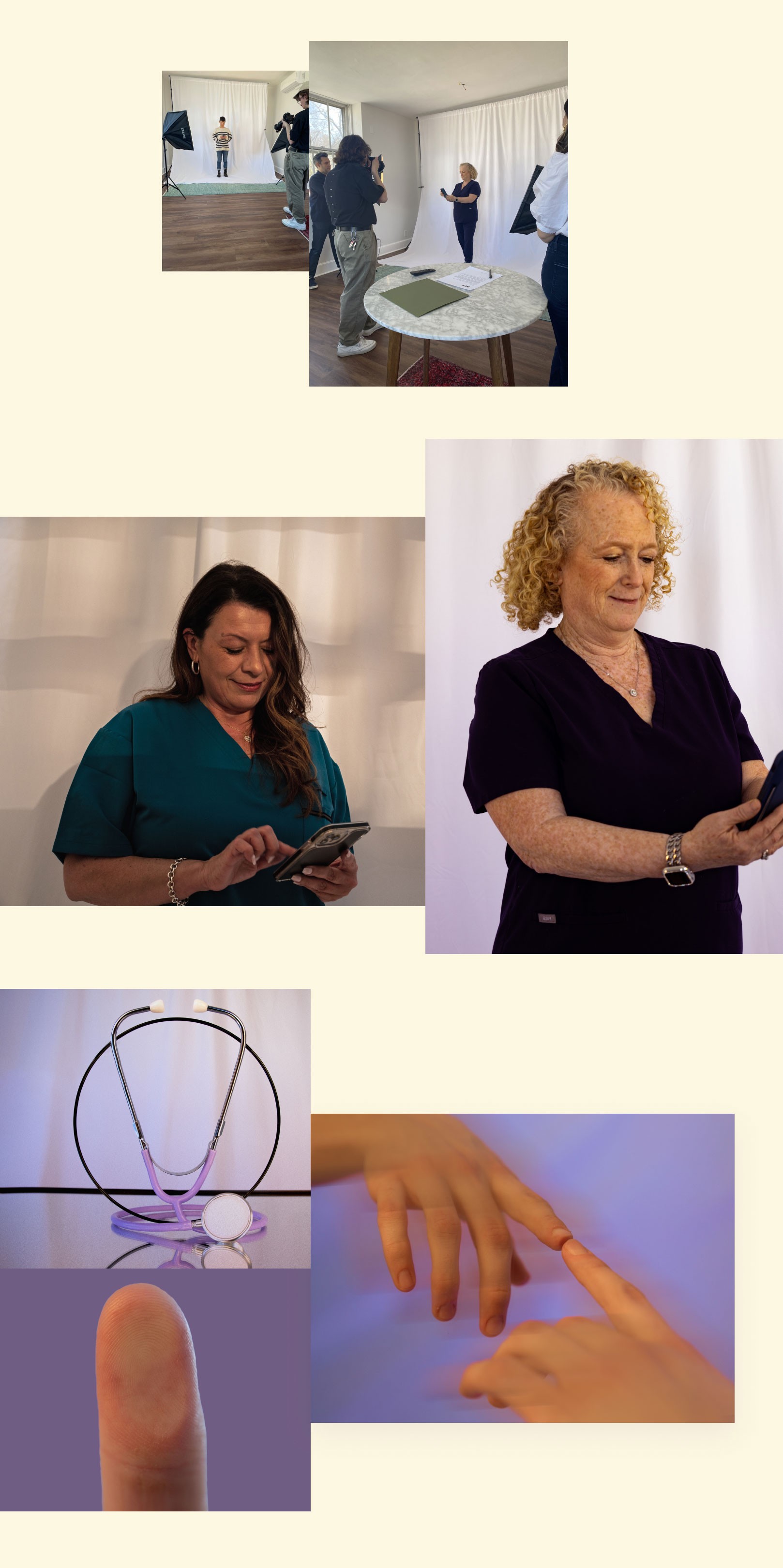 Our team captured real nurses as the center of M7's brand, highlighting human interaction and empathy in healthcare. We selected and styled each photo to convey the platform's benefits while showcasing technology and humans coming together. We retouched the images for a polished and professional look, delivering high-quality assets within budget for the marketing site.