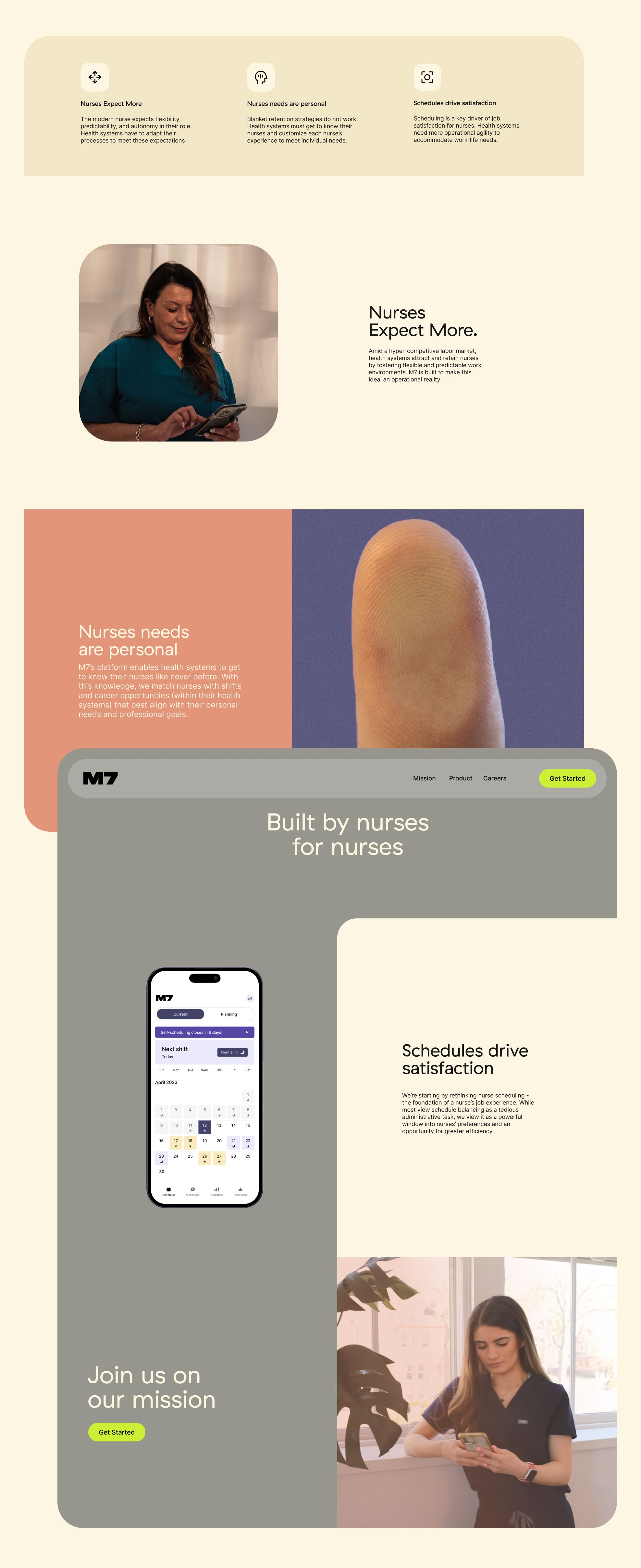 M7 recognized the critical role that nurses play in the healthcare system and saw an opportunity to transform their working environment. Amid a nursing shortage, M7 aimed to make the nursing profession more sustainable and attractive by providing a technological solution to support healthcare systems. Our team partnered with M7 to help them build and launch their first website, showcasing how their technology empowers health systems to make operational and organizational changes for modern nurses. This case study outlines how we collaborated with M7 to develop their digital presence and support their mission to revolutionize the nursing workforce.