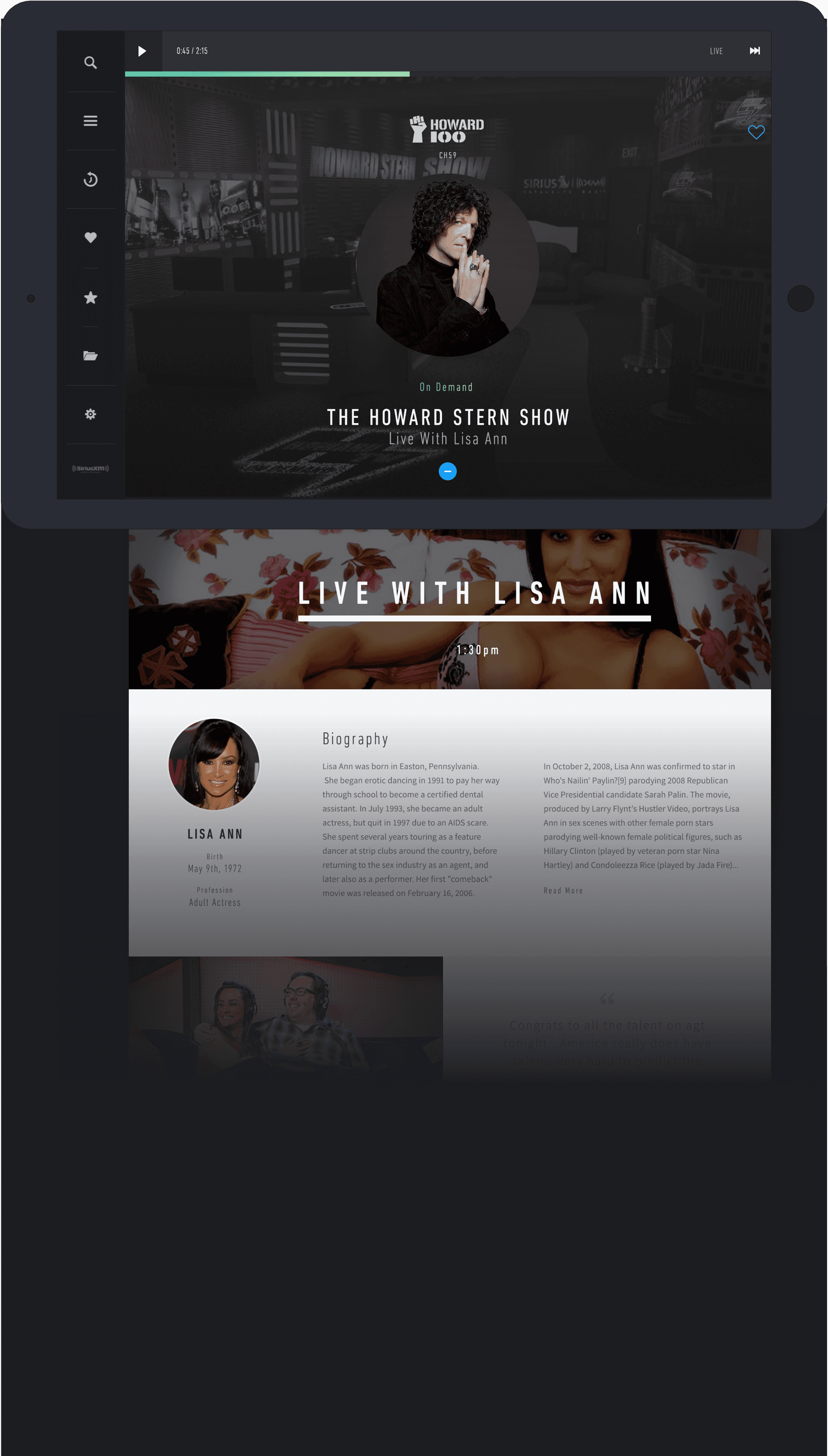 In 2013, SiriusXM, the satellite radio giant, was looking to expand its footprint by offering its services across all digital properties in a cohesive UX/UI. The opportunity to be the creative partner for the product design was won by Code & Theory. I was hired to join the newly formed team inside of Code & Theory. A testament to the times, the team was 3-4 ux designers, a creative director, myself as a senior designer, and a jr designer. Additionally, they had tight oversight from 2 of the company's founders. Code & Theory had made a name for themselves, designing the digital entities of the most prominent fashion magazines like Vogue and Interview. They occupied a fashionable office in Soho and had the agency buzz as the brightest and sharpest in the industry.